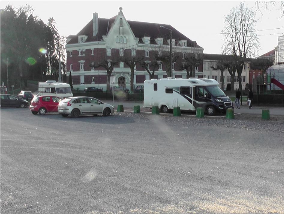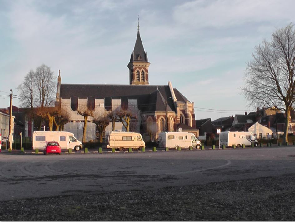 We headed for Cambrai because there were a couple of Aires in that area. We found the one in the centre of Cambrai and it looked really inviting and was empty. There was a barrier – the stanchion in the ground type.