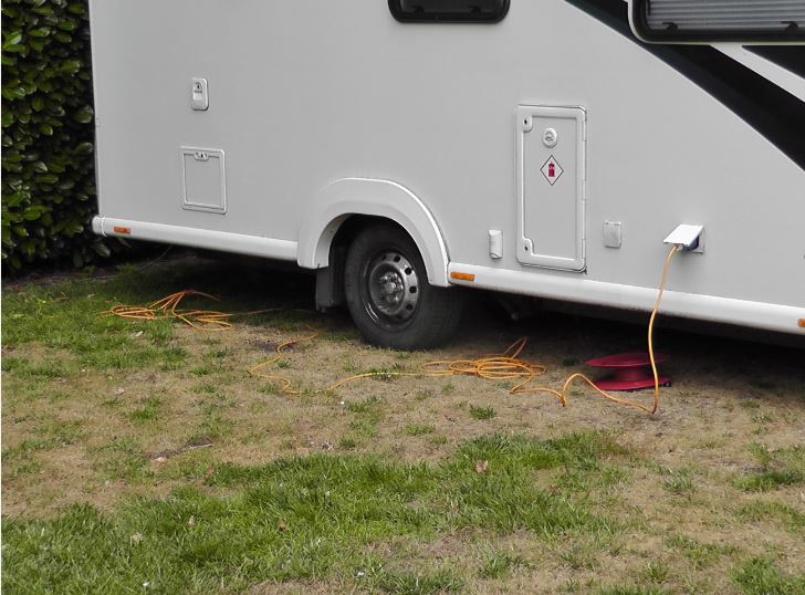 We arrived at the site in good time and checked in. We’ve been to this campsite before. It’s full of Brits – we knew it would be – but it’s a pleasant site and we fancied somewhere to relax for a day before the real start of the holiday. We were allocated a pitch which is pretty much the same area as we previously stayed. We have a European 2 prong plug adapter for the hook-up cable and you need it at this site.