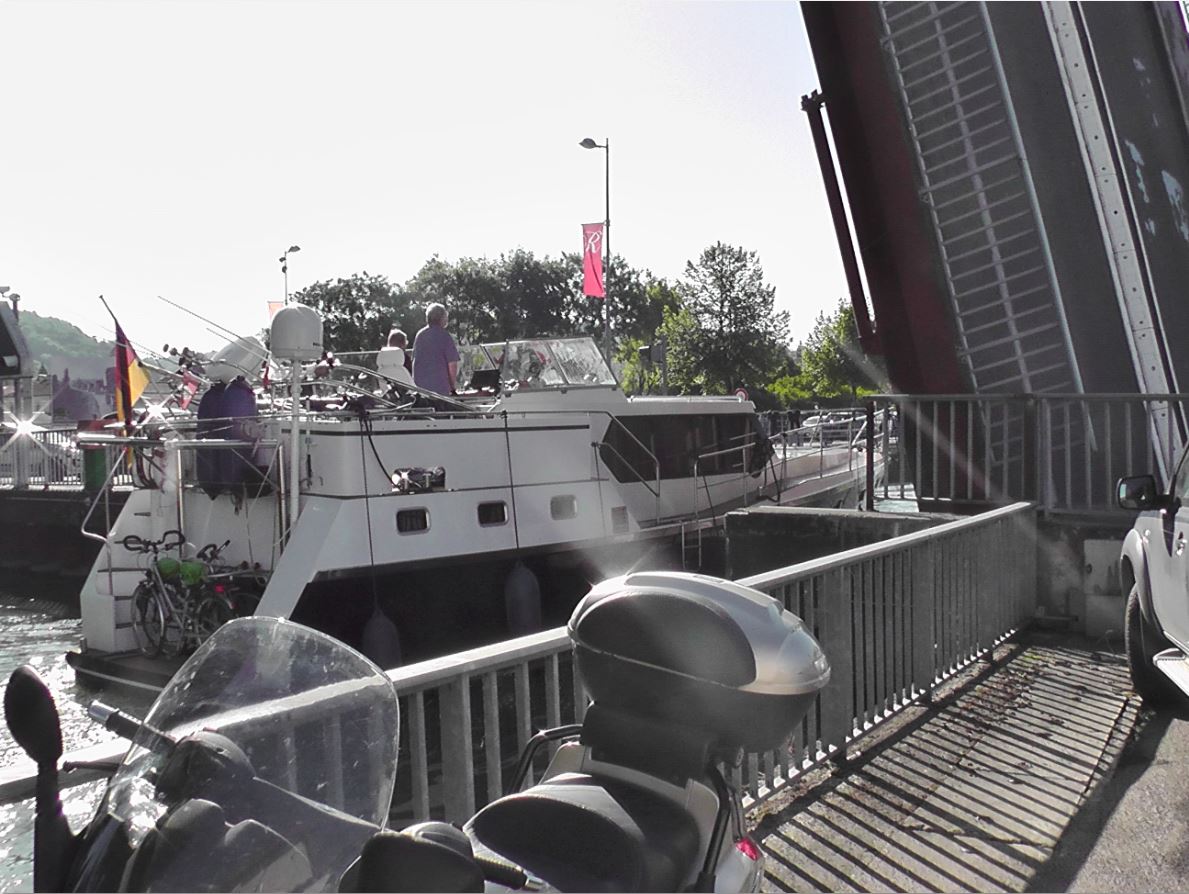 At one point, we could see a few boats gathering near a bridge over the canal and eventually, the barriers came down and blocked the road traffic and the bridge lifted – a bit like Corporation Road but on a smaller scale.
