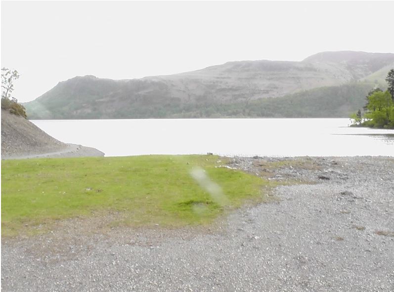 It had started raining as we got toward Keswick and it gradually became heavier and heavier. Strong winds had also been forecast. When Ellie and I used a break in the rain to go for a walk on a footpath from the site to Derwent Water, the wind suddenly got up to almost gail-force strength. We soon cut short the walk and got back to the MoHo just before it started to really chuck it down. That carried on for a long time and it started to flood areas of the site – which you can see from the video.