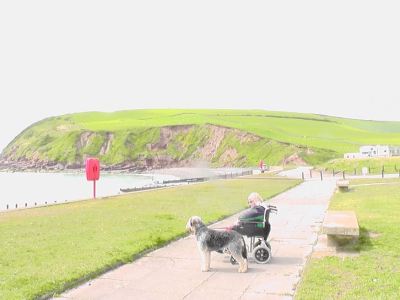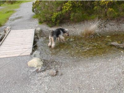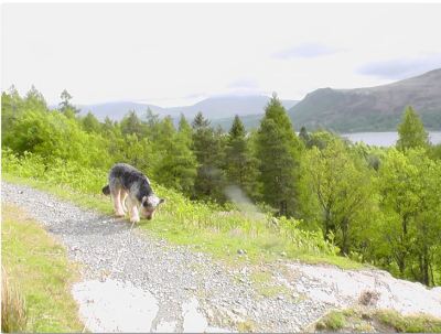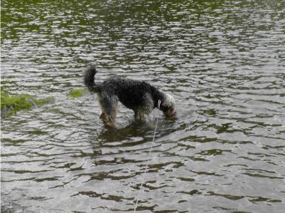 It seemed to be a lot steeper coming down and the ‘path’ was made up of lots of rocks so I was slightly concerned about falling. The descent was not helped by having an Airedale who decided she would emulate a mountain goat and she was jumping about all over the place and was straining at the leash. Anyway, we got down eventually albeit in a somewhat ungainly manner.