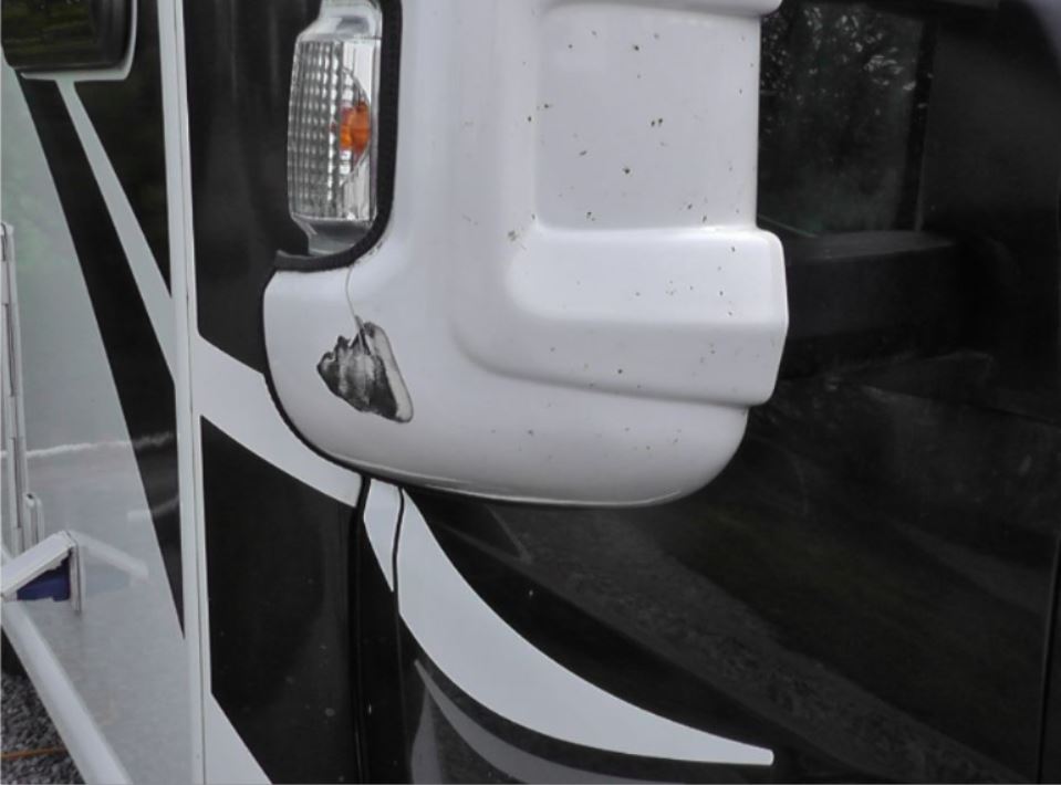 Neither of us stopped. I was sure that all he had done was hit the mirror and it had folded in – which it is designed to do – so why would would you stop? I opened the window and pushed the mirror back out again so that we could carry on until we could park up and check out the damage.